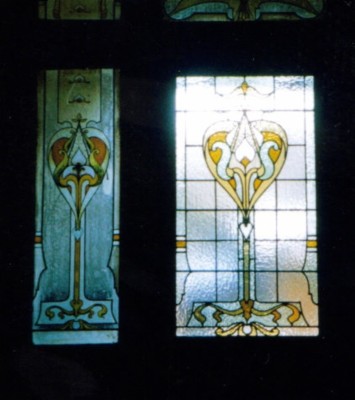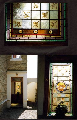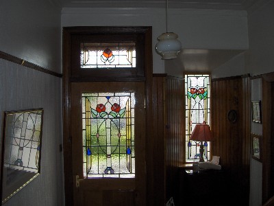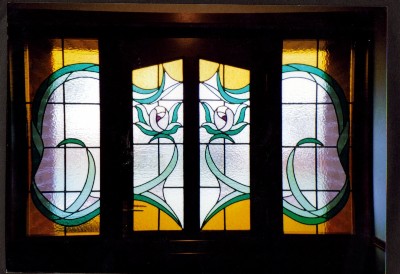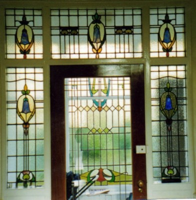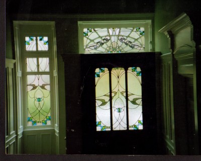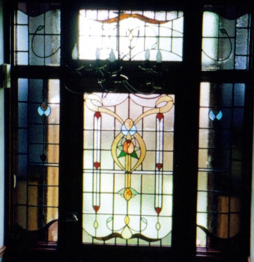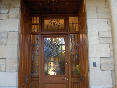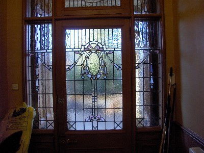 The new stained glass restored life to the entrance and makes a grand statement about the property.