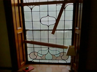Double glazed units replace the old cracked glass, greatly improving the thermal efficiency of this 9 foot by four foot window.